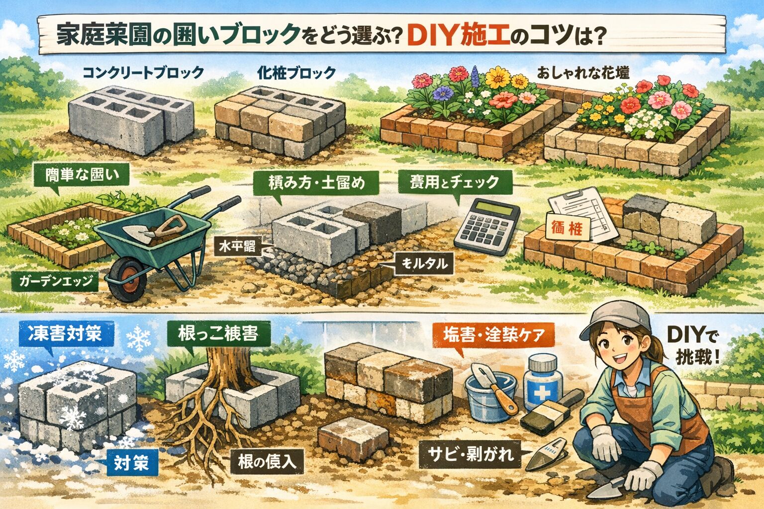 家庭菜園の囲いブロックで土留め!積み方・排水・凍害対策のコツ 公開日:2026年2月15日 未分類 <<この記事にはプロモーションが含まれています>> 家庭菜園の囲いをブロックで作りたいけど、コンクリートブロックと化粧ブロックの違いって何?とか、花壇ブロックの作り方やブロックの積み方、土留めブロックの施工ってDIYでも […] 続きを読む