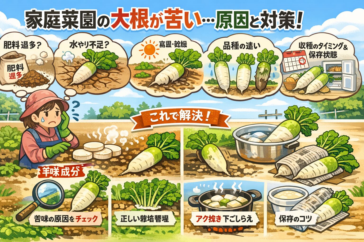 家庭菜園の大根が苦い原因を特定し甘く育てる対策を徹底総整理 公開日:2026年2月18日 未分類 <<この記事にはプロモーションが含まれています>> 家庭菜園で育てた大根が苦いと、「肥料が多かった?」「水やり不足?」「収穫時期が遅れた?」って不安になりますよね。あなたのそのモヤモヤ、すごく分かります。 大根が苦い原因 […] 続きを読む