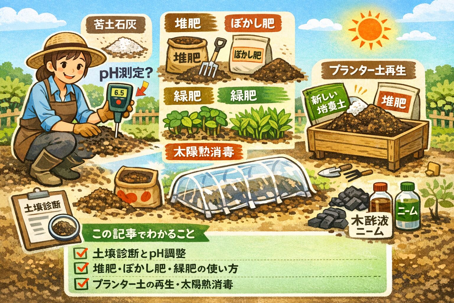 家庭菜園の有機栽培の土作り入門:団粒構造と堆肥の目安量など 公開日:2026年2月24日 未分類 <<この記事にはプロモーションが含まれています>> 家庭菜園で有機栽培をやろうと思ったとき、いちばん悩むのが土作りじゃないですか。堆肥はどれくらい?苦土石灰はいつ?pH測定って必要?…ここ、気になりますよね。 私も最初は […] 続きを読む