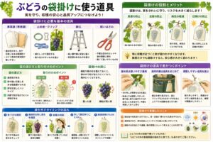 また、袋掛け前には房の形をある程度整えておくと、袋の中で粒が当たりにくくなります。摘粒が荒いままだと、袋をかけても中で圧迫し合って傷みやすくなることがあるんですね。だから、袋掛けに使う道具は単に「かぶせるため」のものではなく、房の品質を守るための仕上げ道具として考えると理解しやすいです。