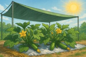 高温環境そのものを完全には避けられませんが、遮光・反射・通風・水分・施肥の五つを少しずつ整えるだけでも、雌花の発生と受粉後の肥大が目に見えて安定します。