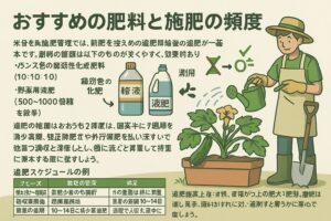 追肥 | 10〜14日ごと少量 | 液肥の希釈倍率厳守 |