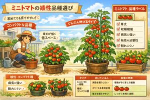 | ミニトマト一般種 | まずは失敗を減らしたい人 | 情報が多く育て方を調べやすい |
