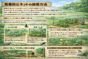 防鳥ネットの張り方をもっと丁寧に確認したいなら、家庭菜園の防鳥ネットの張り方も参考になります。