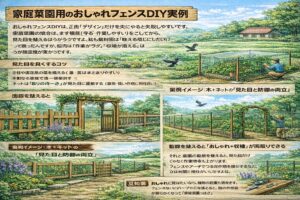 おしゃれフェンスDIYは、正直「デザイン」だけを先にやると失敗しやすいです。家庭菜園の場合は、まず機能(守る・作業しやすい)を作ってから、見た目を整えるほうがラクですよ。私も最初は「映える感じにしたい!」って思ったんですが、結局は「作業がラク」「収穫が増える」ほうが満足度が高かったです。