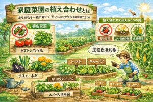 家庭菜園の植え合わせは、相性表の暗記よりも、設計の考え方を掴む方が近道です。背丈で日陰を作りすぎない、根の層をずらす、香りや花で守りを足す、同じ科を続けない。これを守るだけで、失敗はかなり減ります。