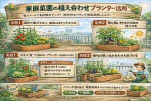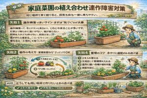 季節別の植え合わせは、主役の科を入れ替えるだけでも効果大です。完璧を狙うより「同じ科が続かない」だけ先に守ると、失敗が減りやすいですよ。