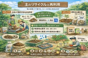 土づくり全体の考え方は、サイト内のこの記事でも詳しくまとめています。作付け前の整え方を押さえると、再利用の判断がかなりラクになります。