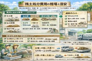 再利用・自治体回収で片づかない場合は「お金で時間と労力を買う」判断になります。ここでは、残土処分費用の目安、依頼先の違い、業者選びの注意点を整理して、あなたが安心して決められるようにします。