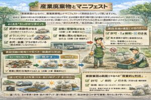 マニフェスト(産業廃棄物管理票)の話が出るのは、この「事業由来」や「産業廃棄物の扱いが必要なケース」に寄るときです。家庭菜園の範囲でも、工事由来の土が混ざったり、事業活動の敷地で出た土だったりすると、扱いが変わる可能性があります。