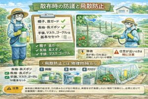 家庭菜園の文脈で、私が特に伝えたいのはここです。多くの人が「収穫物に残った農薬」に意識が行きますが、実は家庭菜園で注意が必要なのは、散布時の吸い込み・皮膚への付着みたいな“その場の暴露”なんです。プロは装備や手順が決まっているのでブレが小さいけど、家庭はその日の気分や状況でブレが出やすい。だから、健康リスクの話をするときは「残留」だけに絞らず、散布シーンまでセットで考えるのが大事かなと思います。