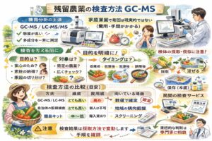 残留農薬をきっちり測るなら、GC-MSやLC-MS/MSみたいな機器分析が王道です。感度が高く、多成分を一斉に測れるのが強みです。家庭菜園で「本当に数値を知りたい」と思ったとき、最終的に頼れるのはこういう分析だと思います。