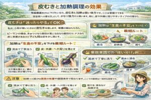 - 食べる前:流水で洗い、必要なら皮むき・加熱に寄せた