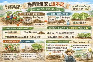 - 施用量の目安と元肥・追肥のコツ