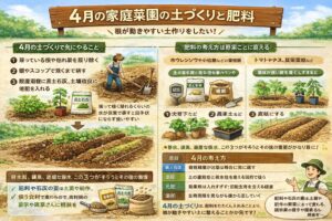 数値や時期はあくまで一般的な目安です。正確な情報は公式サイトをご確認ください。安全や薬剤使用、施肥量に不安がある場合は、最終的な判断は専門家にご相談ください。無理なく進めて、春の家庭菜園を気持ちよくスタートさせていきましょう。