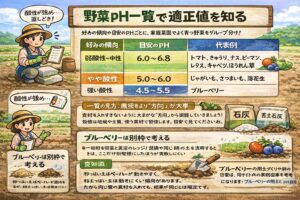 - 狙いは作物ごと:野菜pH一覧で適正値を確認してから動く