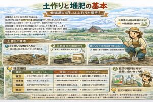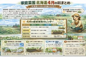 北海道の4月は準備が主役です。土を整え、守る仕組みを作り、植えられる野菜から無理なく始める。この流れを守るだけで、5月以降の家庭菜園がぐっとやりやすくなります。