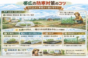 後半では、実際に育て始めるときに差が出やすい管理の部分を掘り下げます。帯広のような冷え込みやすい地域での防寒、土作りと堆肥の考え方、プランター栽培での注意点、4月の作業を整理しやすいカレンダーの使い方、最後のまとめまで一気に確認していきます。