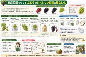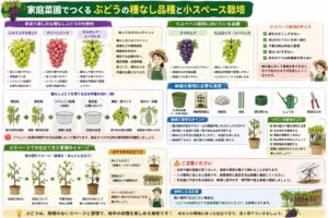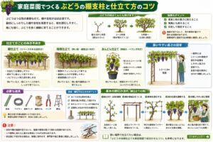 ぶどうは品種比較だけでなく、土壌、肥料、支柱、棚、種なし、小スペース栽培、収穫時期、栽培カレンダー、ジベレリン処理まで知っておくと失敗しにくくなります。