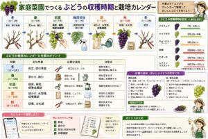 ぶどう栽培の基本をより深く知りたい場合は、ぶどうの木の家庭菜園の始め方と育て方も合わせて読むと、全体像をつかみやすいです。