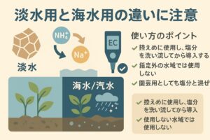 園芸資材として使う場合も、塩水や食塩を含む処理水との併用は避け、肥料や潅水は真水ベースで管理する