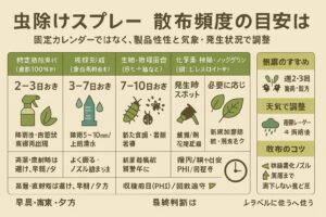 参考として、頻度を決める際の目安を整理します。最終判断は必ず各製品ラベルに従ってください(出典:農林水産省 農薬登録情報提供システム https://pesticide.maff.go.jp/)。