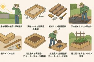 レイズドベッドは段取りを押さえれば難しくありません。次の流れで進めるとスムーズです。